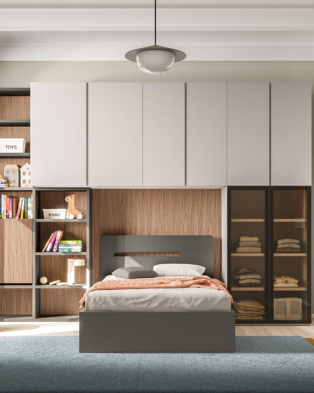 Ogni famiglia ha esigenze diverse: chi deve condividere spazi ridotti, chi cerca una zona studio ben organizzata, chi desidera una stanza che “cresca” con i figli. Il nostro compito è tradurre queste esigenze in un progetto pratico e armonioso. Progettiamo composizioni personalizzate, sfruttando ogni centimetro senza rinunciare all’estetica: armadi angolari, letti scorrevoli, scrivanie estraibili e moduli contenitivi che mantengono ordine e leggerezza. Una cameretta ben progettata non è solo bella, è un piccolo mondo costruito su misura per chi lo abita.